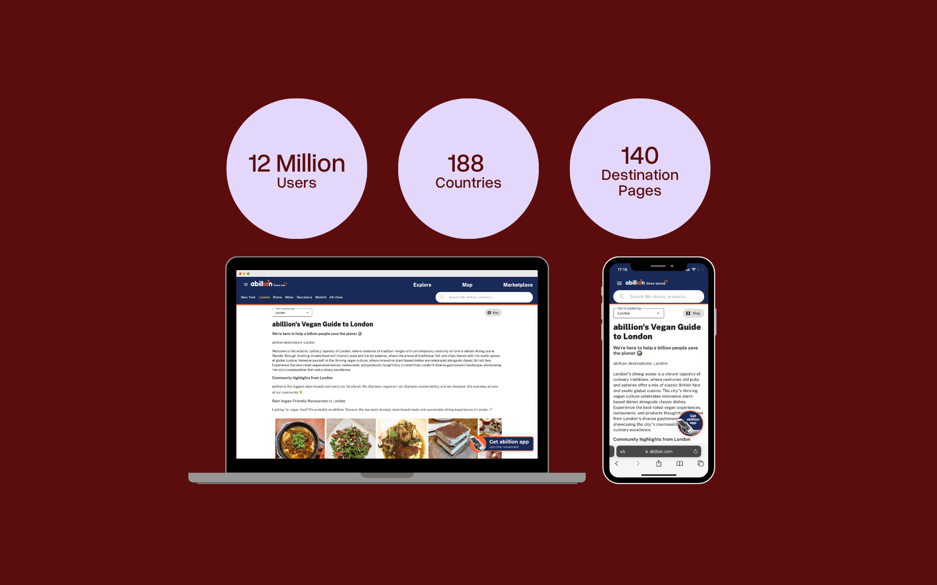 abillion, the world’s first conscious community platform, combines social networking, reviews, and e-commerce, serving over 12 million users in 188 countries. In 2024, it launched Destination Pages, offering curated recommendations for plant-based dining and products around the world.