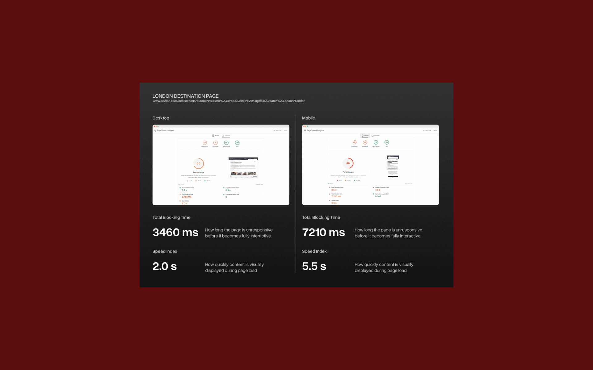 Destination Pages depended on a vast database of over 3 million reviews. Thus, users faced delays waiting for pages to load.