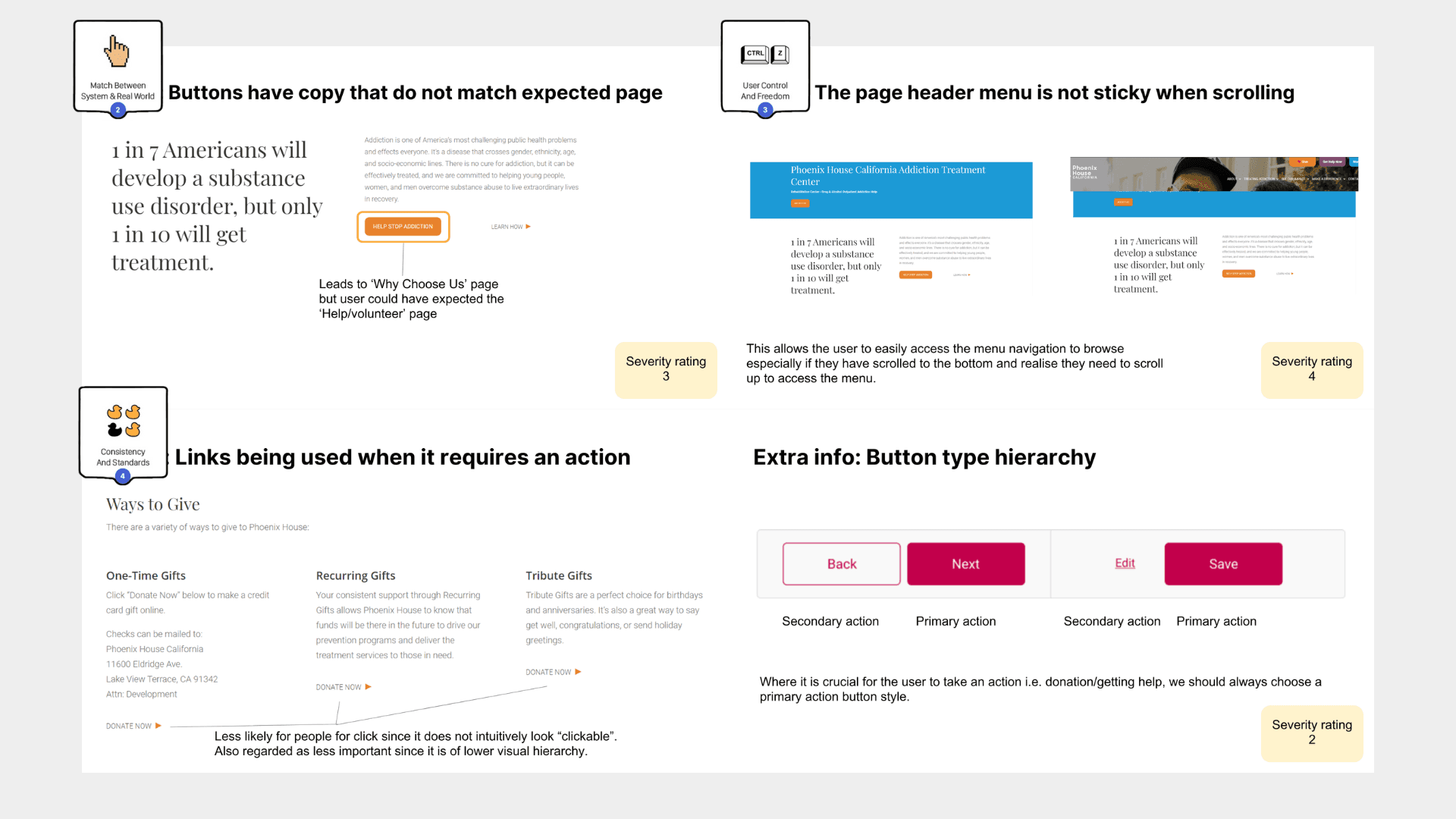 3. Improved Button Hierarchy, Donation Button Visibility, Call-To-Action Visibility & Contrast